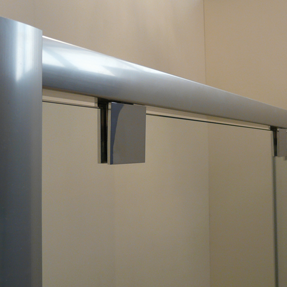 Mampara formada por una hoja correderas y otra fija, o bien por dos hojas correderas al centro y dos fijas en los laterales según modelo, dando un toque de estilo ya que las hojas no van enmarcadas con perfiles. Cuenta con la posibilidad de hacer el conjunto frontal + fijo tanto en recto como en ángulo.